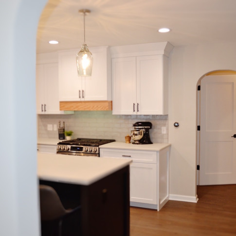 We took out walls and that is always fun but the homeowner wanted us to keep in mind resale value for this house to still appeal to a family. A few requests for no open shelving to collect dust, a kitchen that had ample storage, keep some level of dining room, an island that could accommodate more seating and a functional flow down to the basement since there is a second living space, bathroom and laundry room down there. Scale and proportions for the home was something we played with in the new design to get what felt "right".